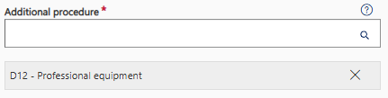 If there is no additional procedure in the declaration, choose “999 – No additional procedure”. The additional procedure is saved when you have chosen it from the list.