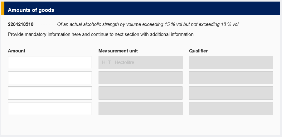 On the seventh step user have to enter amounts of goods in required measurement units.
