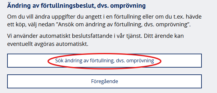 4. Välj att du söker ändring av förtullning, dvs. omprövning.