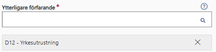 Välj ett eller flera ytterligare förfaranden för varan i rullgardinsmenyn. Ange alla koder för ytterligare förfarande som behövs.