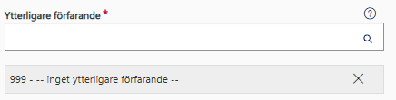 Om det inte finns något ytterligare förfarande i deklarationen, välj ”999 – Inget ytterligare förfarande”. Det ytterligare förfarandet sparas när du har valt det i listan.
